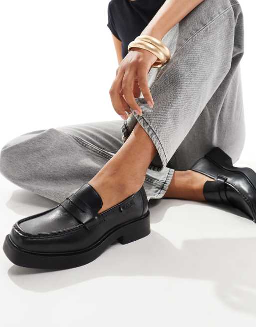 Walk London – Taylor – Svarta loafers i sadelstel av läder