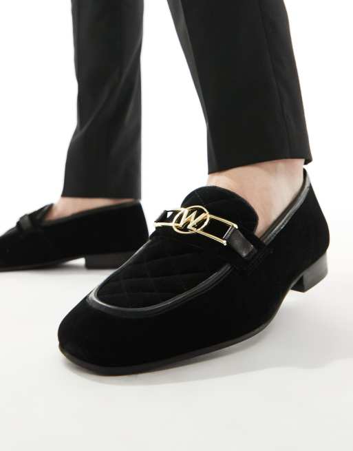 Walk London – Woody – Svarta kviltade loafers i sammet