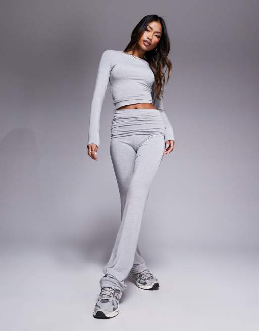 Wanderdoll – Emma – Premium – Gråmelerade byxor i jersey och utsvängd design med nedvikt midja, del av set