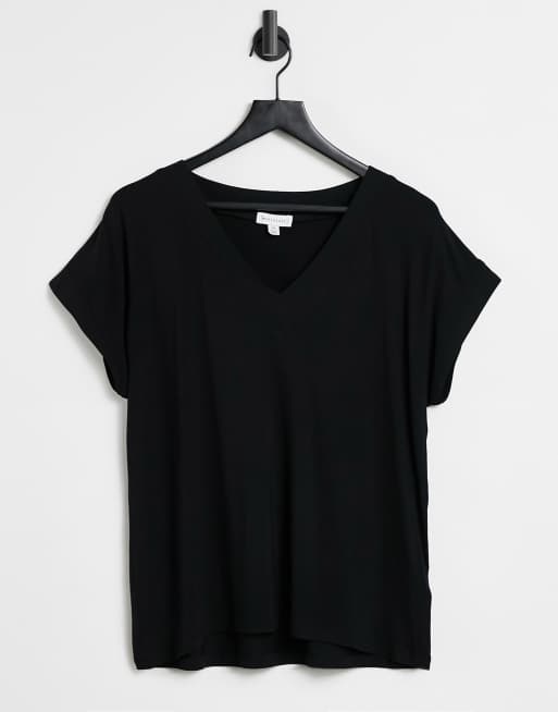 Warehouse – Svart t-shirt i vävt tyg med v-ringning