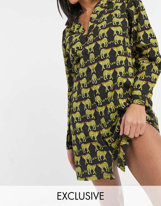 Wednesday's Girl Curve – Tigermönstrat nattlinne med avslappnad passform