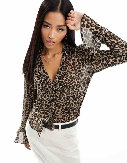 Wednesday's Girl – Flerfärgad, leopardmönstrad och figursydd skjorta