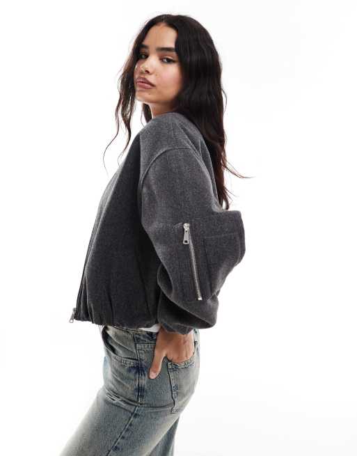 Wednesday's Girl – Mellangrå, stilren bomberjacka med dragkedja