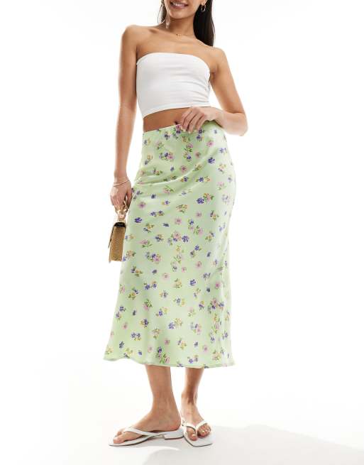 Wednesday's Girl – Pastellfärgad, blommig midikjol i satin