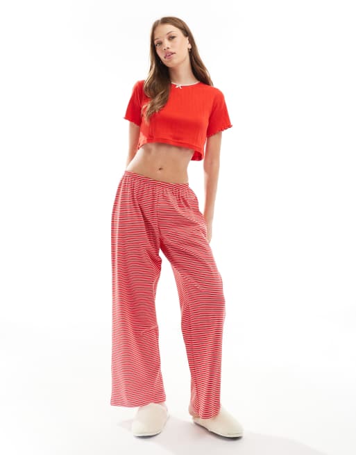 Wednesday's Girl – Pyjamas med rödrandiga byxor och pointellestickad t-shirt