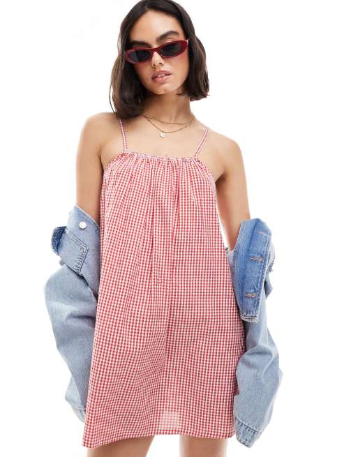 Wednesday's Girl – Röd, ginghamrutig, vid miniklänning med smala axelband