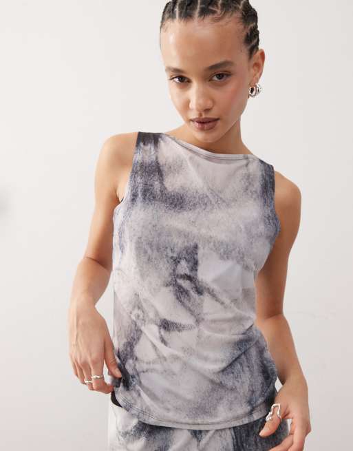 Weekday – Annie – Svart topp i korsettstil med båtringning och grafiskt mönster, del av set