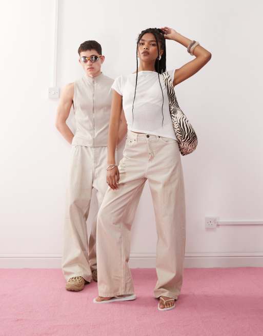 Weekday – Astro – Beige baggy jeans i unisex-modell med låg midja och tvättad finish
