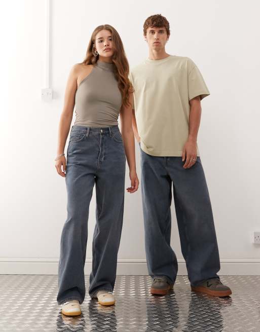 Weekday – Astro – Dimblå, baggy, lediga jeans med låg midja i unisex-modell