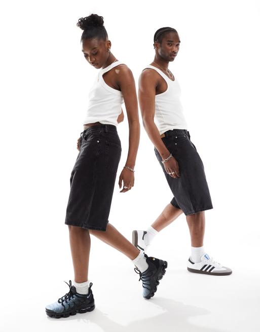 Weekday – Astro Unisex – Svarta jeansshorts i baggystil