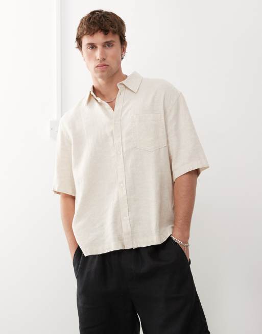 Weekday – Beige linneskjorta i oversize med boxig passform och korta ärmar