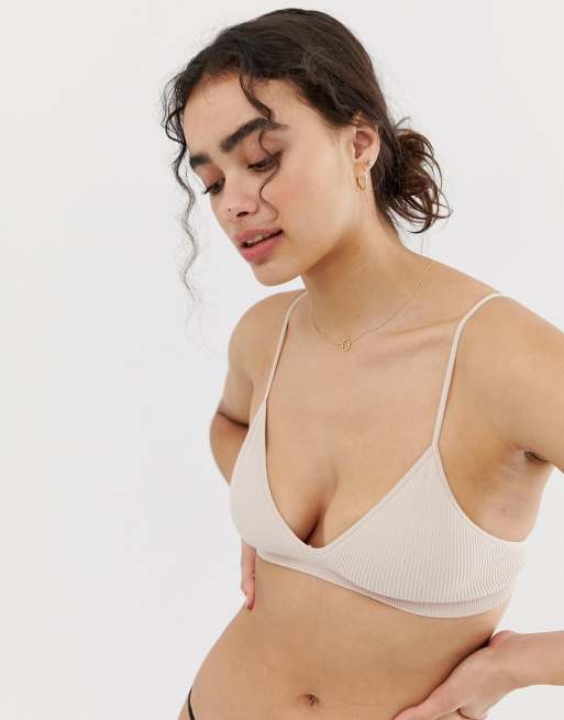 Weekday – Beige ribbad sportbehå i trekantsmodell