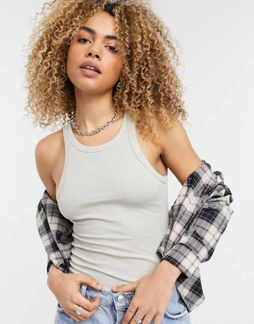 Weekday – Beth – Brungrått ribbat linne med brottarrygg