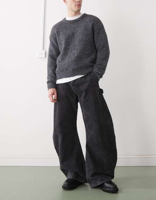 Weekday – Bleksvarta arbetsbyxor med barrelben
