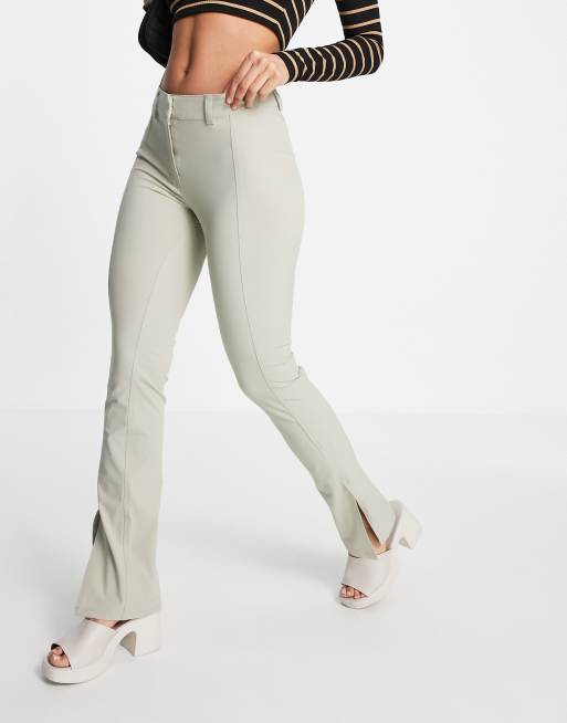 Weekday – Daisy – Grå byxor med låg midja och dekorativ söm framtill