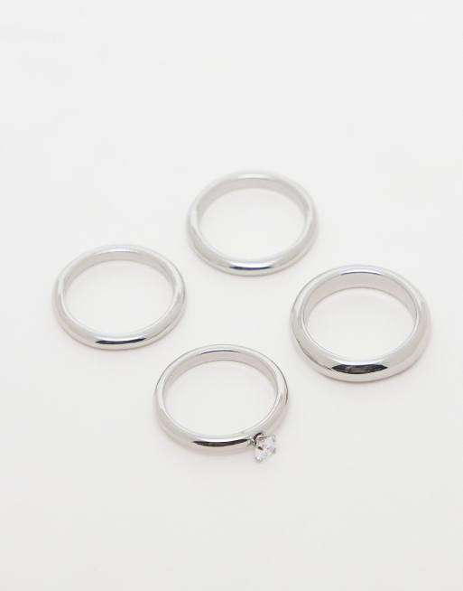 Weekday – Flerpack med silverfärgade ringar med strassdetalj