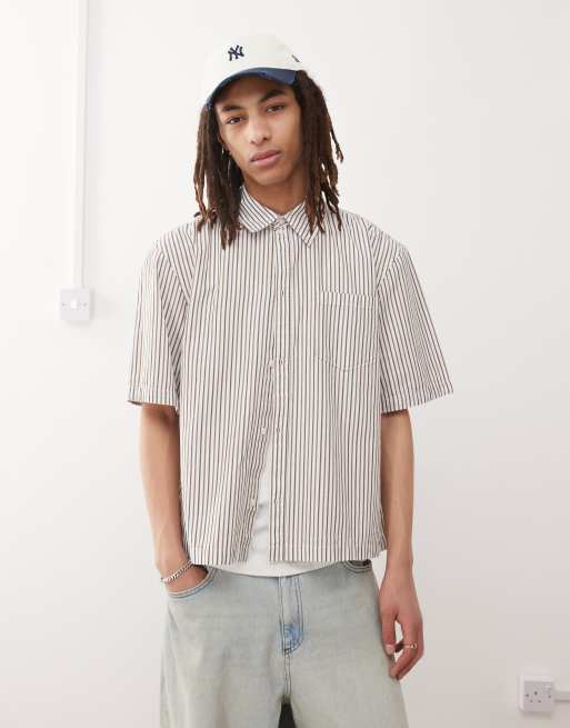 Weekday – Franco – Beigerandig skjorta i oversize med korta ärmar