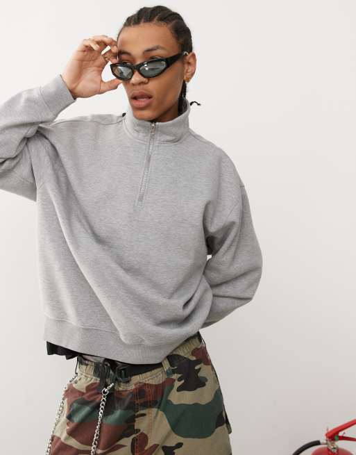 Weekday – Grå, kraftig sweatshirt i oversize med dragkedja vid halsen av jersey