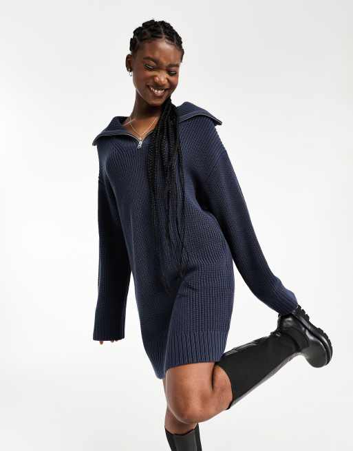 Weekday – Grace – Mörkblå mini-tröjklänning med kort dragkedja - endast hos ASOS