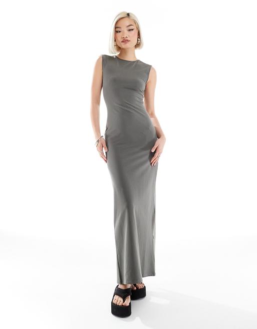 Weekday – Inez – Grå maxiklänning med smal passform och slits baktill, exklusivt hos ASOS