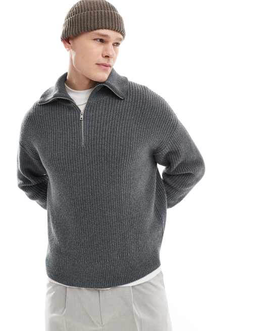 Weekday – Jim – Gråmelerad tröja i ullmix med halvlång dragkedja