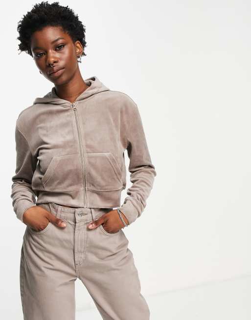 Weekday - Juno - Beige huvtröja med dragkedja - BEIGE