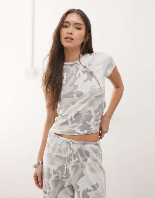 Weekday – Kamouflagemönstrad, figurnära t-shirt, del av set
