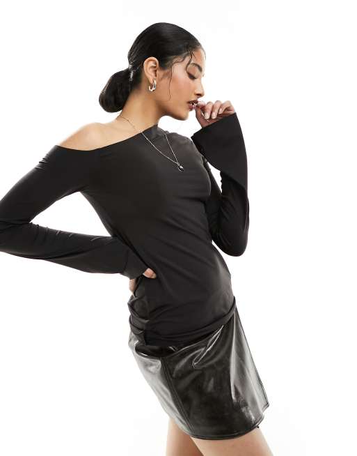 Weekday – Kiara – Svart enaxlad topp med långa ärmar