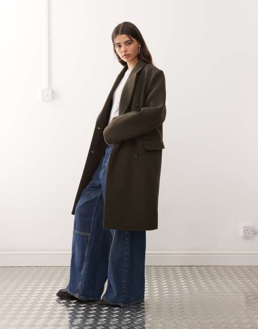 Weekday – Logan – Mörk kakigrön, knälång kappa i oversize av yllemix