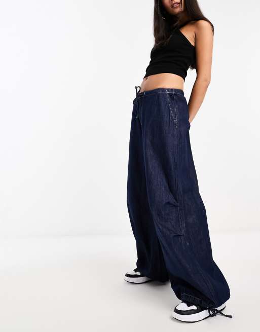 Weekday – Luisa – Mörkblå, baggy jeans i fallskärmsstil