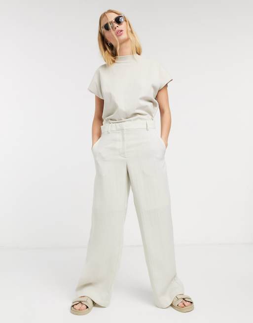 Weekday – Mono – Beigefärgade avsmalnande linnebyxor