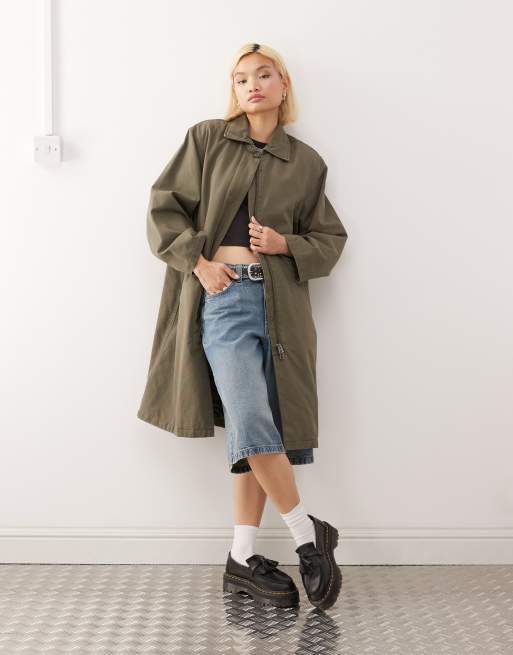 Weekday – Mörk kakifärgad bilkappa i kanvas och oversize