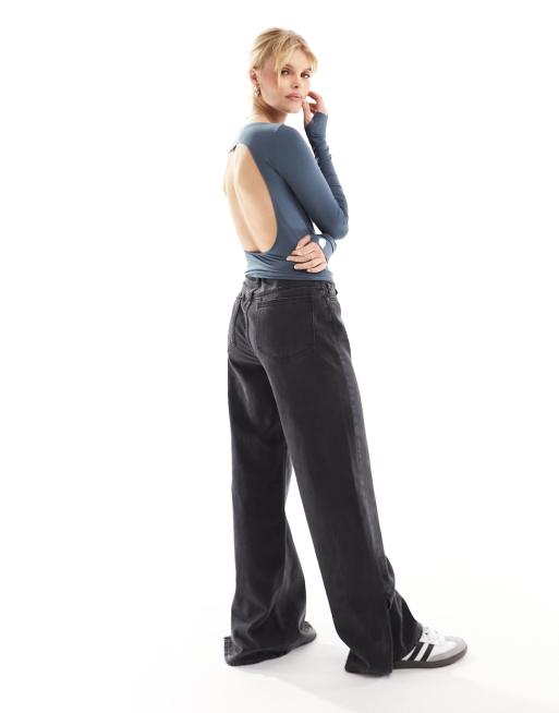 Weekday – Mörkblå, långärmad topp i seamless med bar rygg