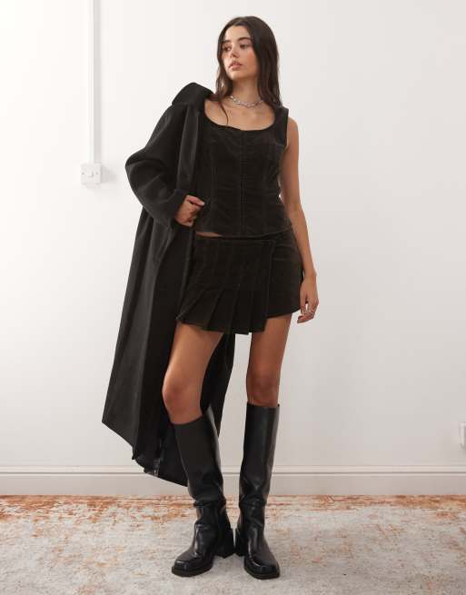 Weekday – Mörkbrunt, tvättat set i sammet med topp och kjol