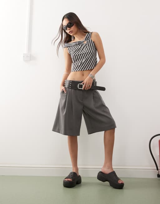 Weekday – Mörkgrå, figursydda, långa shorts med vida ben
