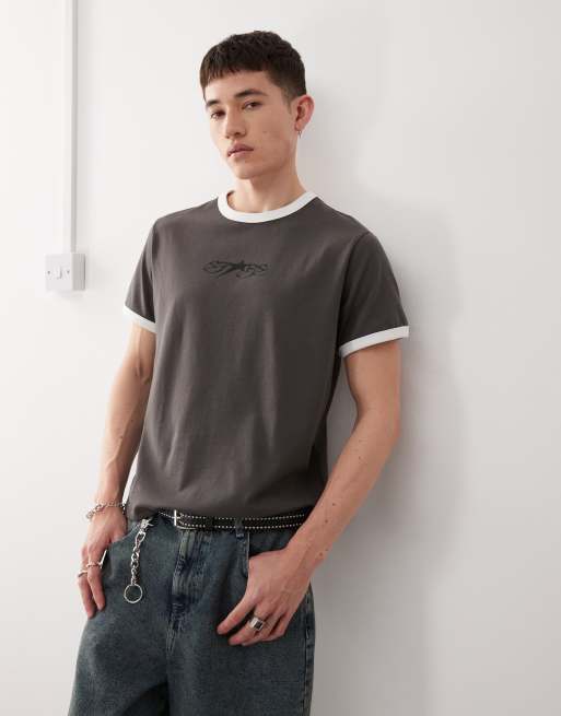 Weekday – Mörkgrå t-shirt med rund halsringning och tryck