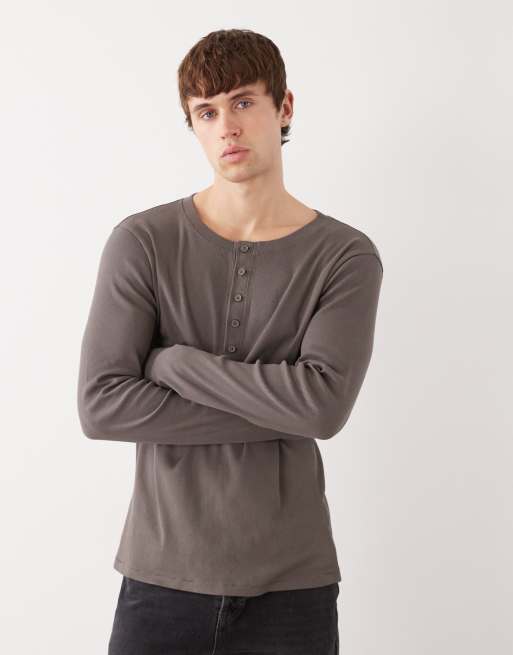 Weekday – Mörkt gråbrun henley-topp med långa ärmar
