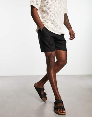 Weekday – Olsen – Svarta shorts i linnemix och regular fit