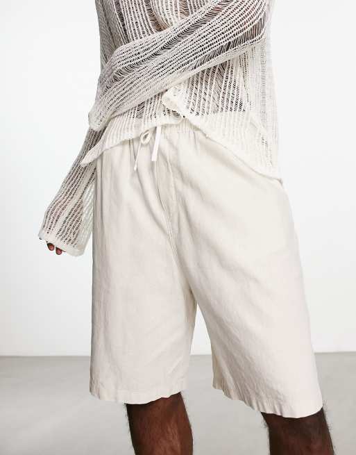 Weekday – Patrik – Naturvita shorts i linnemix med ledig passform