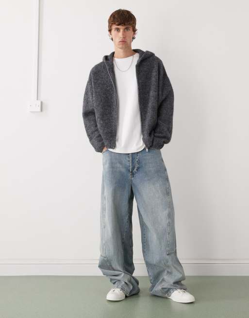 Weekday – Premium – Gråmelerad, stickad huvtröja i yllemix