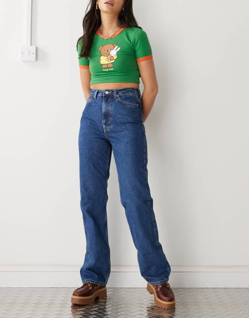 Weekday – Rowe – Blå jeans i regular fit med extra hög midja och raka ben