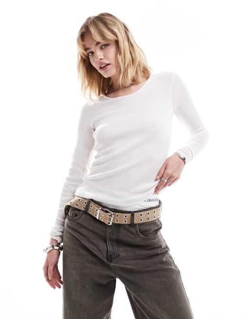 Weekday – Ruby – Vit, halvskir, ribbad topp med långa ärmar