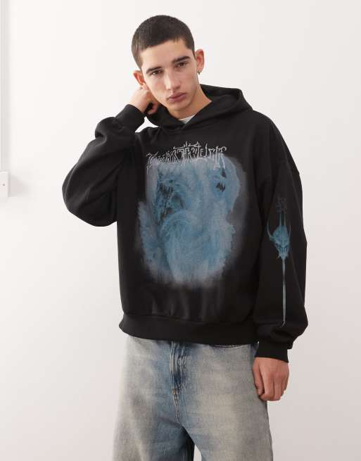 Weekday – Svart huvtröja i oversize och boxig passform med draktryck