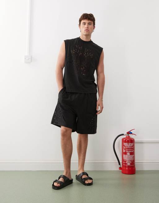 Weekday – Svart set med ärmlös t-shirt och shorts med broderie anglaise