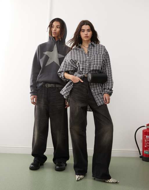Weekday – Unisex – Astro – Svarta, stentvättade, baggy jeans med låg midja och ledig passform