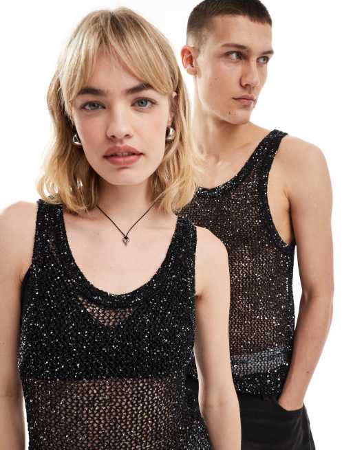 Weekday – Unisex – Mattues – Svart, skirt linne med paljetter - endast hos ASOS