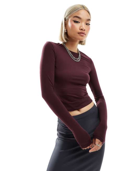 Weekday – Vinröd långärmad t-shirt med smal passform, exklusivt hos ASOS