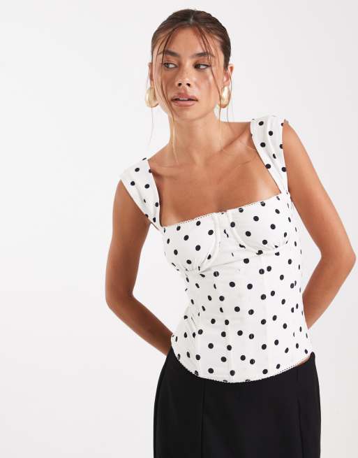 WeWoreWhat – Vit och svartprickig korsettopp med ryschade kupor