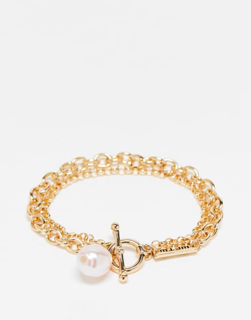 WFTW – Guldfärgat grovt armband med dubbla kedjor och rosa pärla