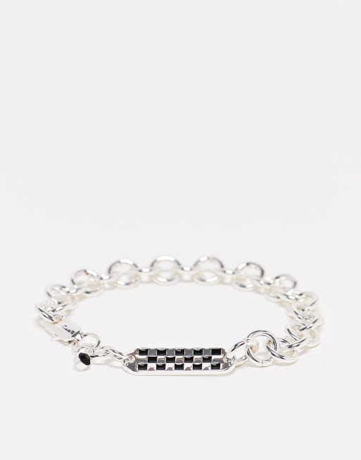 WFTW – Silverfärgat kedjearmband med schackrutig ID-bricka